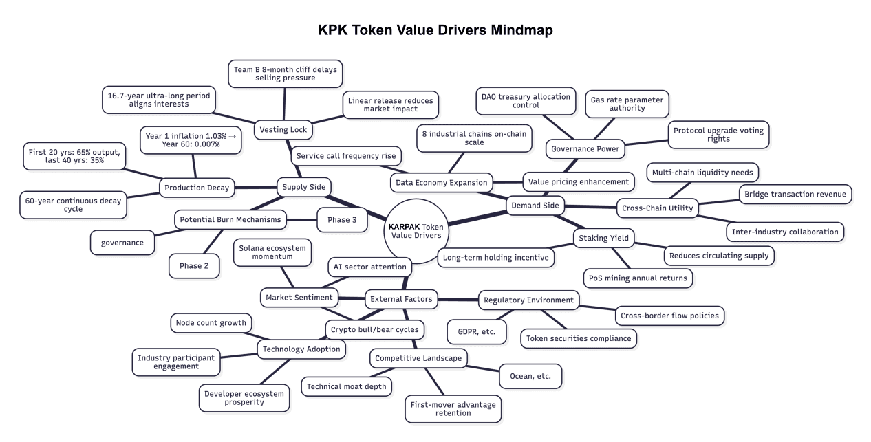 The value growth of the KPK token is not reliant on market speculation; rather, it is determined by a multi-dimensional feedback network of eight driving factors. This dynamic system ensures that the token's price scales sustainably alongside the expansion of the real-world mobility ecosystem.